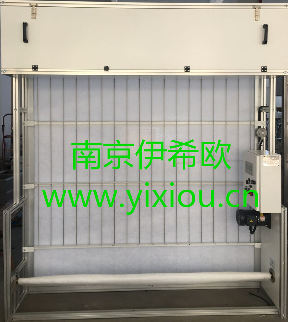 南京伊希歐科技公司手搖式捲簾過濾器 手動搖卷繞式過濾器實際上是一種配初效濾料的空氣除塵設備,主要特點為人為搖卷手輪實現了濾料更換的自動化。 材質:冷軋板噴塗、鋁型材或SUS 304/316等; 控制:手動、時間/壓差控制、光電控制,PLC 控制等; 濾料:專用覆網過濾材料,G3、G4效率等; 安裝:成品出貨現場只需通電便可運轉,若因現場安裝空間限制, 可散件包裝發運,貨到現場即可靈活拼裝成型。 工作原理 1、主要是由濾料、濾料纏繞系統及手動搖卷手輪部分組成; 2、新過濾材料裝在上料箱,當進風帶有高濃度含塵空氣通過卷繞式過濾器后,過濾器前後壓差隨濾塵增加而逐步上升; 3、當過濾器阻力上升到設定的終阻力值時,人為的搖卷更新濾料。