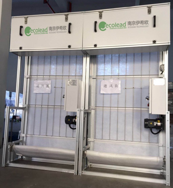 浙江湖州某环保公司购买的风管型上下式自动卷帘过滤器 设备名称:风管型上下式自动卷帘过滤器 设备数量:1套 发货日期:2022年1月10日 产品简介: 风管型上下式自动卷帘过滤器设备风量:100000m3/h;尺寸:4614W*4680H*2350D;材质:3.0mmt 碳钢;控制系统:自动和手动压差控制;滤料:过滤器专用G3滤棉;配套安装固定辅材、底部支撑框架8#镀锌方管。 工作原理 风管型上下式自动卷帘过滤器实际上是一种配初效滤料的空气除尘设备,它是通过一整套的控制系统实现了滤料更换的自动化。 风管型上下式自动卷帘过滤器常用于较小或矮的空间。当空间高度受局限时,我们必须严格考虑有效过滤面积以符合要求的风量。卧式自动卷绕式过滤器宽长型的设计可以安装于狭小的空间,并且可以满足风量设计要求。 当自动卷帘过滤器用于过滤有害颗粒物或刺激性气体时,在更换率料时,操作人员要进入有害粉尘或刺激性气体的封闭空间此操作人员有伤害。通过过滤箱型 卧式自动卷绕式过滤器新型设计,操作人员不需入内操作更换滤料。