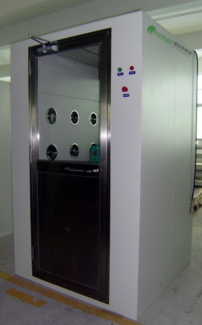 风淋室尺寸:1050W*1050D*2075H 1套,箱体材质:1.0冷板烤漆,门:单开手拉门,镶5T透明钢化玻璃,初效过滤材料:可洗无纺布涤纶,配2台550w风机,配节能吸顶灯,SUS不锈钢喷嘴12个(PLC控制系统互锁功能,断电情况下,门锁自动解除。另配传递窗1组,洁净工作台2组。