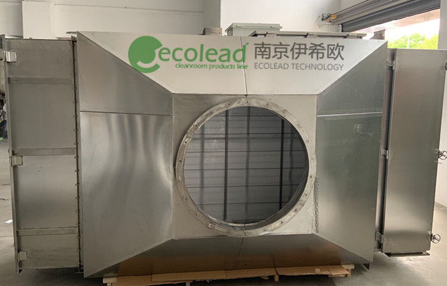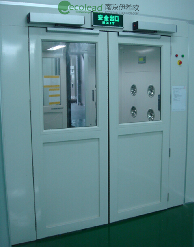 南京伊希欧 风淋室简介 产品简介 风淋室是进行人身上净化和防止污染空气进入洁净区的装置,它是利用高速的洁净气流清除人员身上服装或物料表面的尘粒。同时还起到气闸室的作用,阻止室外空气对净化室或低级别对高级别净化室的污染。 L型转角式适用于无尘车间与缓冲区域不在同一直线位置,需要L型来衔接,可以节省空间,使行走路线更顺畅,从而提高通行效率。 产品功能: 风淋室内的空气经初效过滤器由风机压入静压箱,经高效过滤器净化,从喷咀高速喷出,从而吹除人身上和携带物品表面附着的尘埃,防止未经净化的空气进入净化区域。 产品特性: *产品结构坚固,便于安装 *PLC 控制系统稳定高效,如有停电,风淋室门会自动解锁*初效高效两级过滤,高效效率高达99.99%效率@0.3um *高风速360度可调式不锈钢喷嘴 *易于更换初效和高效的装置 *配置洁净室专用净化灯*可调式的吹淋时间(10-99秒) *配德国品牌闭门器 *可靠的互锁功能*配有急停按钮